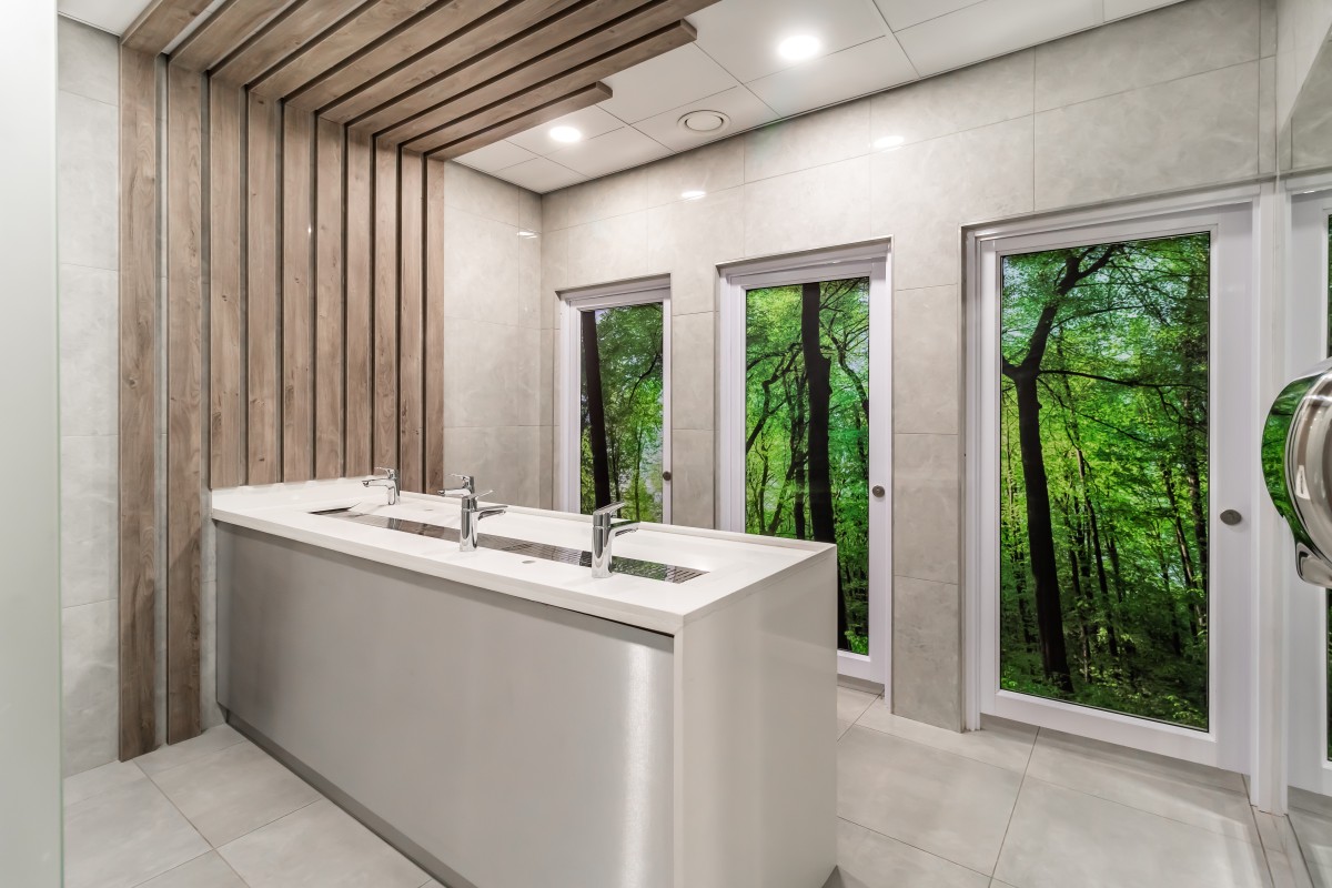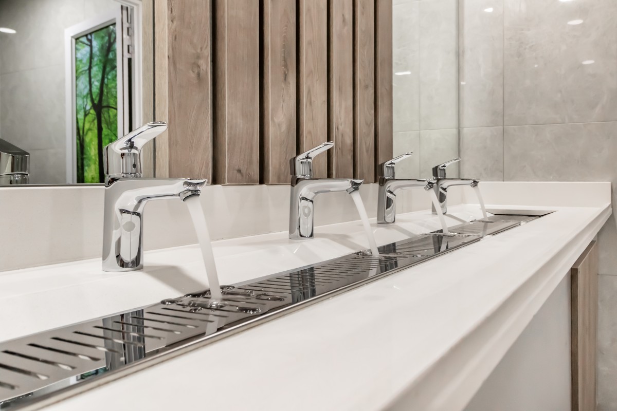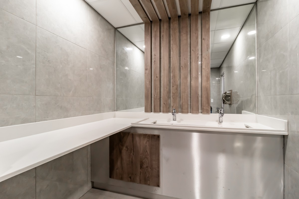 Locally manufactured vanity units designed for high-frequency use.